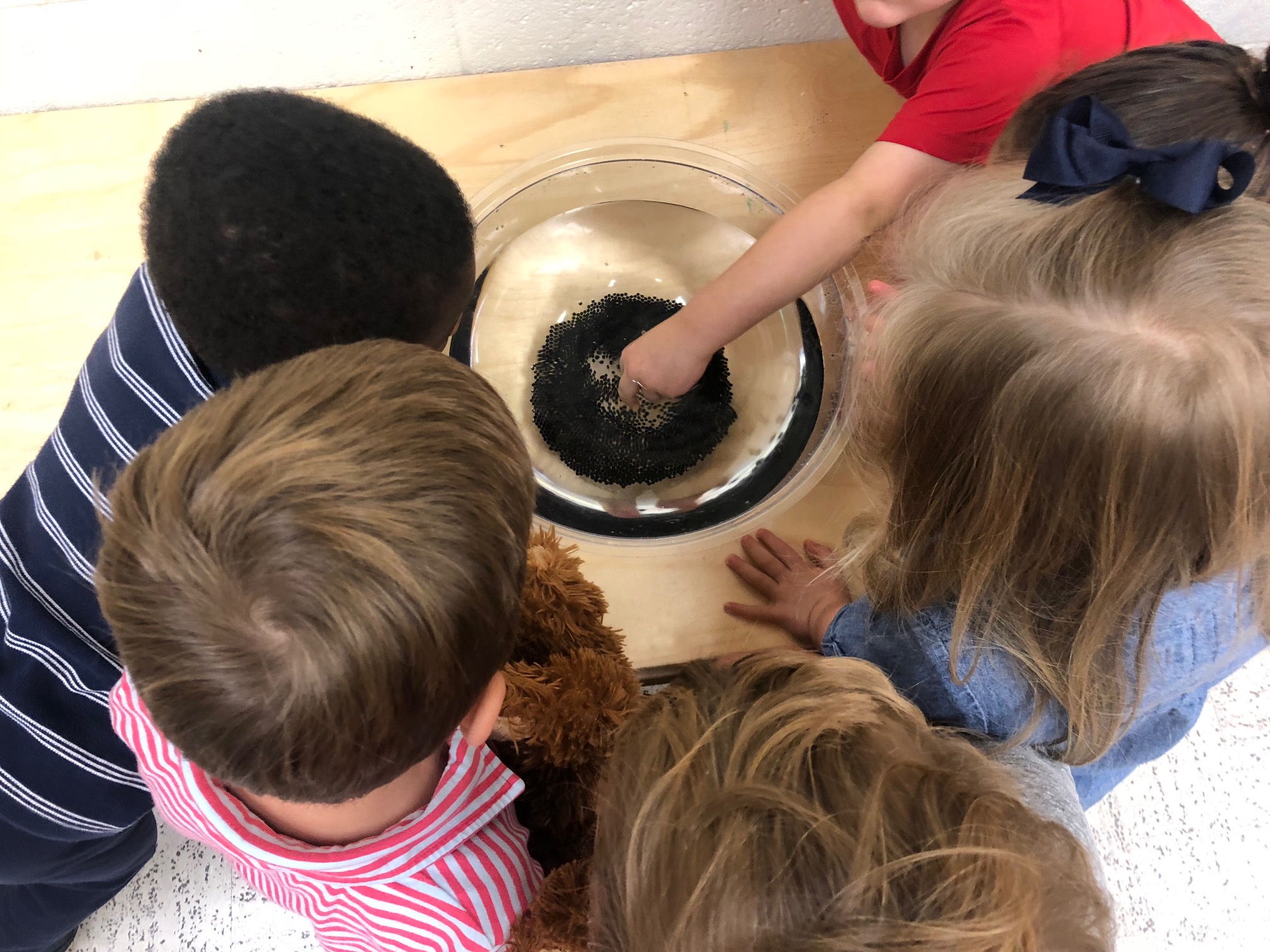 First you have to soak the water beads in water. Kids love watching and feeling as the water beads expand.