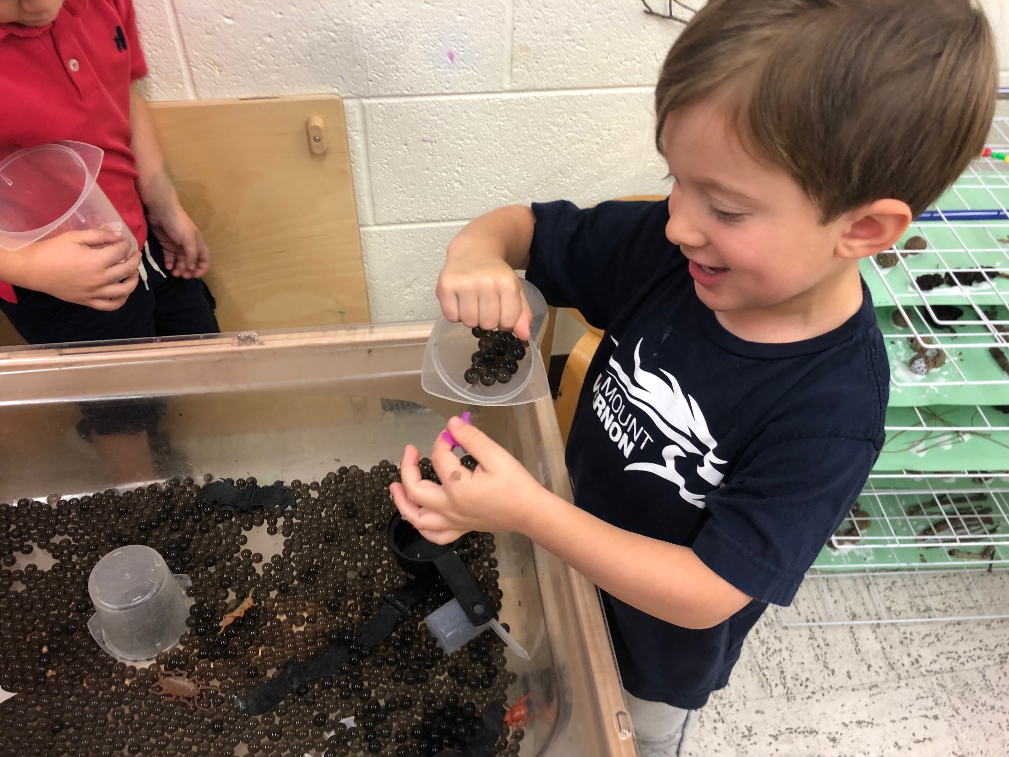 When they are done soaking pour them in a sensory bin and add some halloween toys.