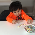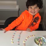 Kids love candy hearts. They are great for practicing patterns. Studies have shown that encouraging a child’s understanding of patterns contributes to the development of various kinds of mathematical thinking, including counting, problem-solving, drawing inferences about number combinations, and even algebra.