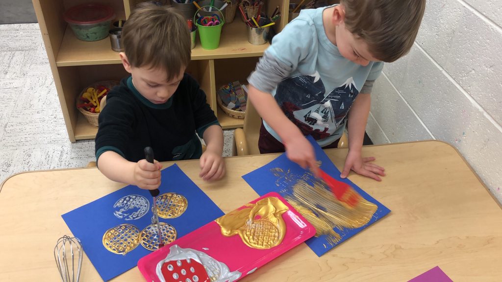 We had so much fun painting with cooking tools this week! This was a fun process art activity. It was a great opportunity for us to go over some of the vocabulary we have learned during our cooking project.