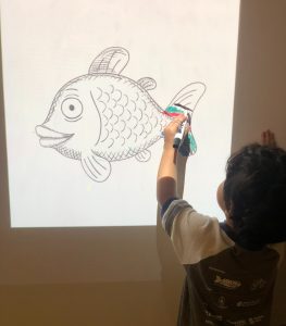Age 2+ Coloring on a smart board! AGES 2+ The use of larger vertical surfaces such as chalkboards, marker boards, and Smart boards allows children to use bigger arm movements that encourage strength and Read More » May 7, 2019 No Comments
