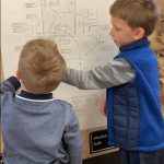 The preschool where we teach is part of an infant-Grade 12 school, and the proximity of the construction of a new upper school building meant that we could walk across to watch, witness, and learn from the construction of a new upper school building. And…. on top of that, we were lucky enough to get our hands on the real blueprints! This added another exciting element to our obsession with building. Now students would often draw a blueprint for their structures and from the blueprint, they would build- just like we had seen being done across the street. We are a curiosity / project based school, and this excitement about building continued to morph into our project. Through this excitement and interest for building, we would create opportunities that enabled our children to learn and develop essential developmental skills.