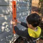 After building and building and building in the classroom, we decided it would be only fitting to find a real animal structure. This led us to a friend’s doghouse. After the excitement of the bus ride to visit the doghouse, we did observational drawings of the doghouse. We took photos of the doghouse. We made sure the walls and floors were level. And, of course, we measured the doghouse – with blocks!