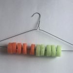 First cut your pool noodle into pieces. Then cut a slit in each piece. For this activity you need 10 pieces, 5 of one color and 5 of another color.