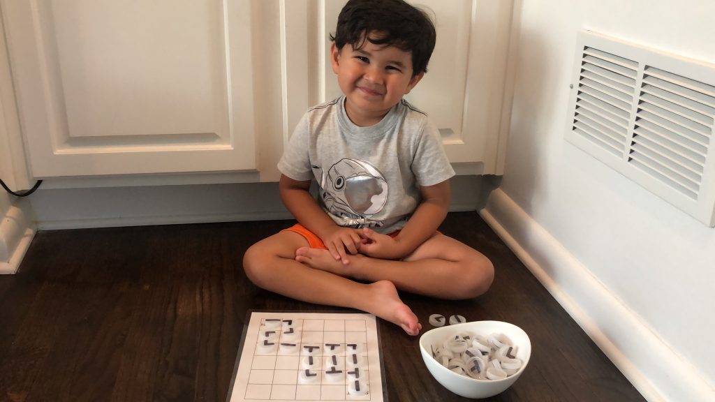 BOTTLE CAP MAZE! AGES 3+Kysen has been really into mazes, so we created this maze board to go with some bottle caps. The challenge was to begin at the start square and make your way down to the finish square. When he was done we counted how many bottle caps it took him to get to the bottom. He also loved making different designs on the maze board.Get the printable for this activity here >>> https://learnasyouplay.net/shop-premium-printables/