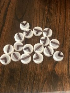 Start by drawing directional lines on your bottle caps with a permanent marker. I did 3 different lines.