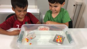 The first time they tried it they put all the candy corns in the middle of the foil. The second time we talked about distributing the weight. If they spread the candy corns out could the foil hold more?