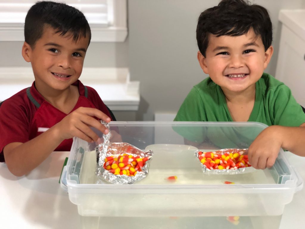 Have them guess how many candy corns they can put on the foil before it sinks.