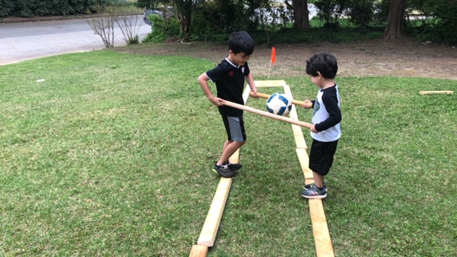 Balancing Ball Activity! Ages 4+ This was a challenge for the boys. They had to work together carrying the ball with the sticks to the end of the course. If the ball dropped they had to go back to the start. They were working on teamwork, communication, balance, coordination and gross motor skills. This was a fun way for them to practice accomplishing a goal together. They didn’t get it right away but when they did accomplish the goal they were so excited and proud!Full Details >>> https://learnasyouplay.net/2020/03/29/balancing-ball-activity-ages-4/