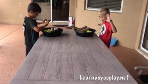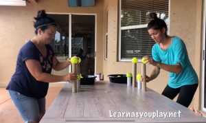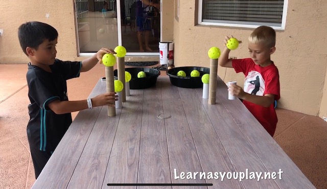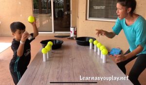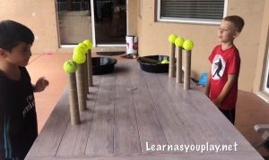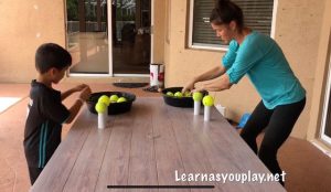 This was a fun race! We did 3 different races! We all had fun with this one. Watch until the end to see the mom’s race! This game is great for hand- eye coordination, balance, math and motor skills.