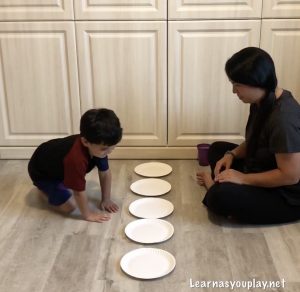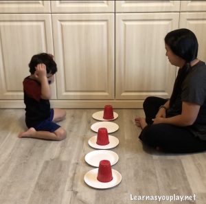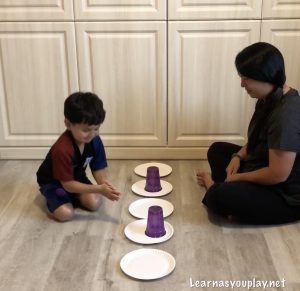 Then I challenged him with different patterns using the plates and cups.