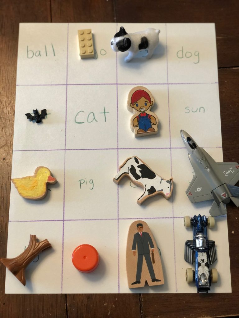 Kysen has been really into reading so I made him a reading scavenger hunt board. He really had fun looking around the house for all the objects! I used mostly CVC words and threw in a couple of words he is familiar with. I would suggest starting with CVC words as they are the easiest to sound out. This would be a fun activity to adapt to virtual learning as well!