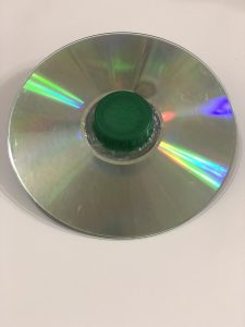 First hot glue the marble to one side. Then hot glue the cd or dvd to the other side. Now your spinner is ready. When you spin the marble goes on the bottom.