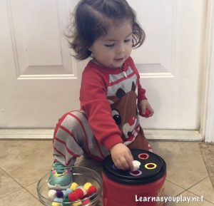 This was a fun way to work on Devyn’s fine motors and color recognition. She is still working on her colors as you will see in the video. In the video she is interested in matching the colors but towards the end she just wants to play with the materials. As she interacts with the provocation I talk to her about the colors. She really enjoyed exploring with these materials!