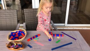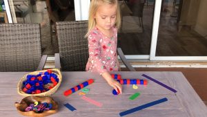 Then have your child measure how many unifix cubes long the tape is. Once they have measured the tape have them place the number next to the line of cubes.