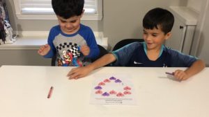 These DIY heart puzzles were so easy to make! Just cut out some hearts with construction paper. Make a design down the middle and cut