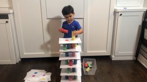 This was a fun way to work on Devyn’s fine motors and color recognition. She is still working on her colors as you will see