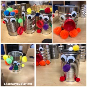 *We used magnetic tape to get the loose parts to stick the cans. Here is a fun loose parts activity with endless opportunities. The kids
