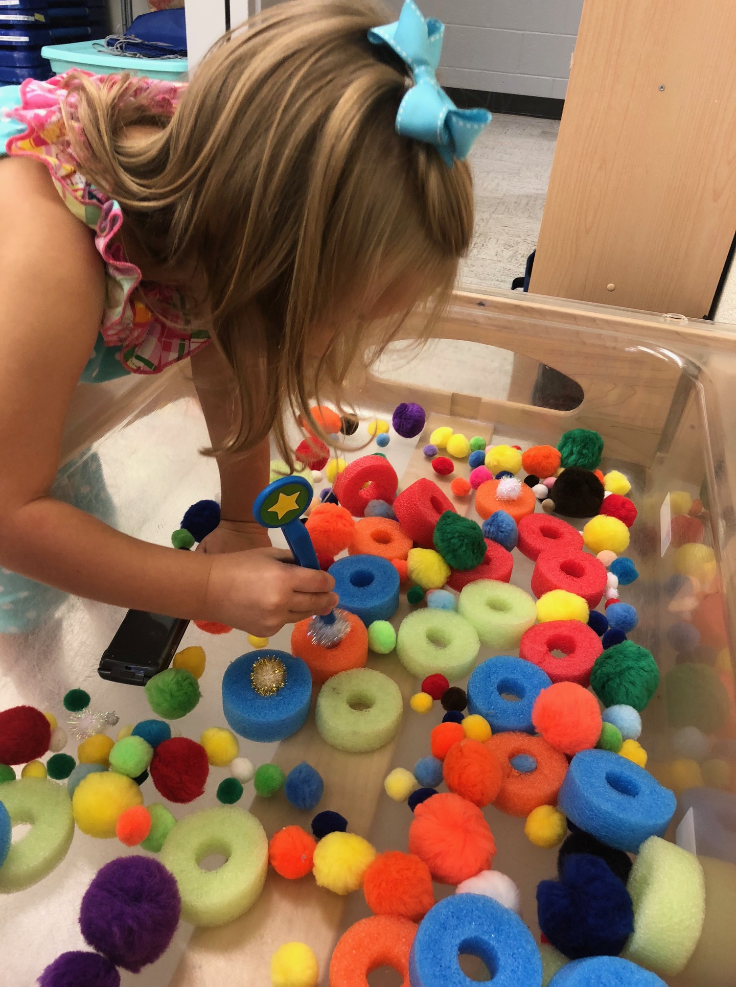 This activity is great for fine motor and spatial reasoning skills. Strong spatial reasoning skills in preschool help support math learning in elementary school. Materials: Pom