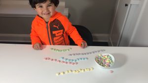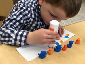 We have been working on patterns this week. In this activity, the kids created a pattern with the counting bears. Then they represented their patterns