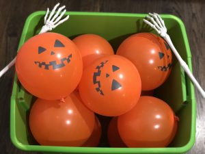The boys named this activity the Pumpkin Patch Fallout! They were pretending all the pumpkins fell out of the pumpkin patch. Then they worked together