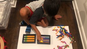 Have any old frames you don’t use anymore? This is a fun transient art activity that helps with spatial awareness. I challenged Jalen to fill
