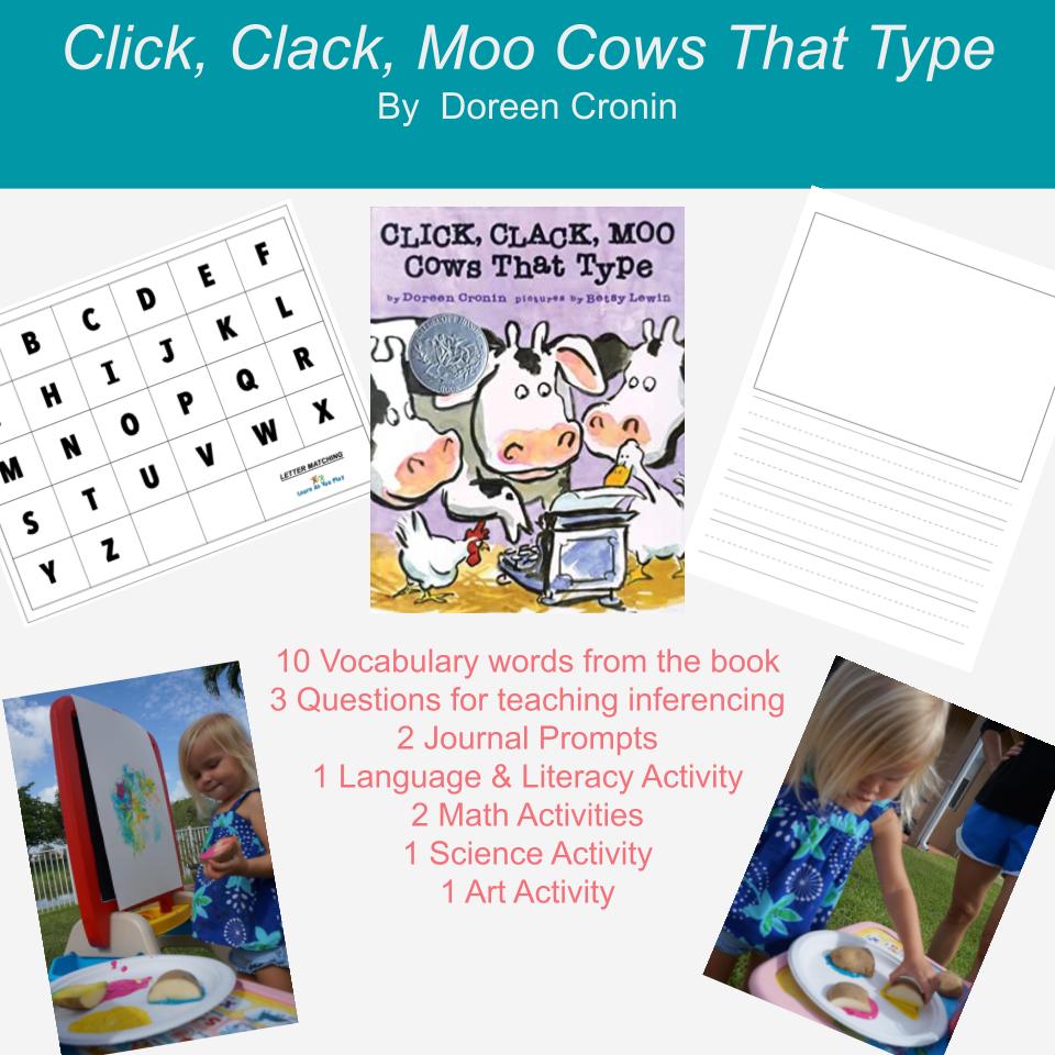 Click Clack Moo Cows That Type, by Doreen Cronin is a funny story about cows who find a typewriter and start to write letters to their farmer with demands they feel will improve their life on the farm.